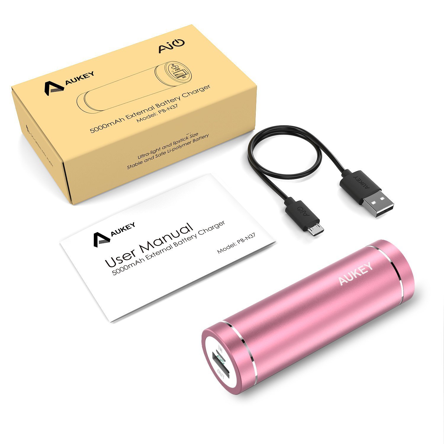AUKEY Mini Batteria Portatile di 5000mAh per iPhone, Kindle ecc., Ingresso 2A & Uscita 2A, Perfetto per il Viaggio e le Vacanze (Nero)