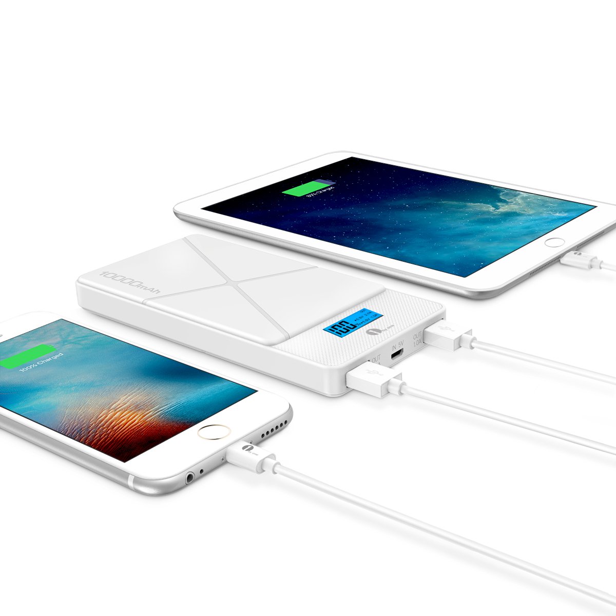1byone 10000 mAh, Caricabatterie Portatile con 2 porte USB, Compatto Caricatore Portatile Esterno con Schermo LCD e Classica Scocca per Smartphone, Nera, Bianco.