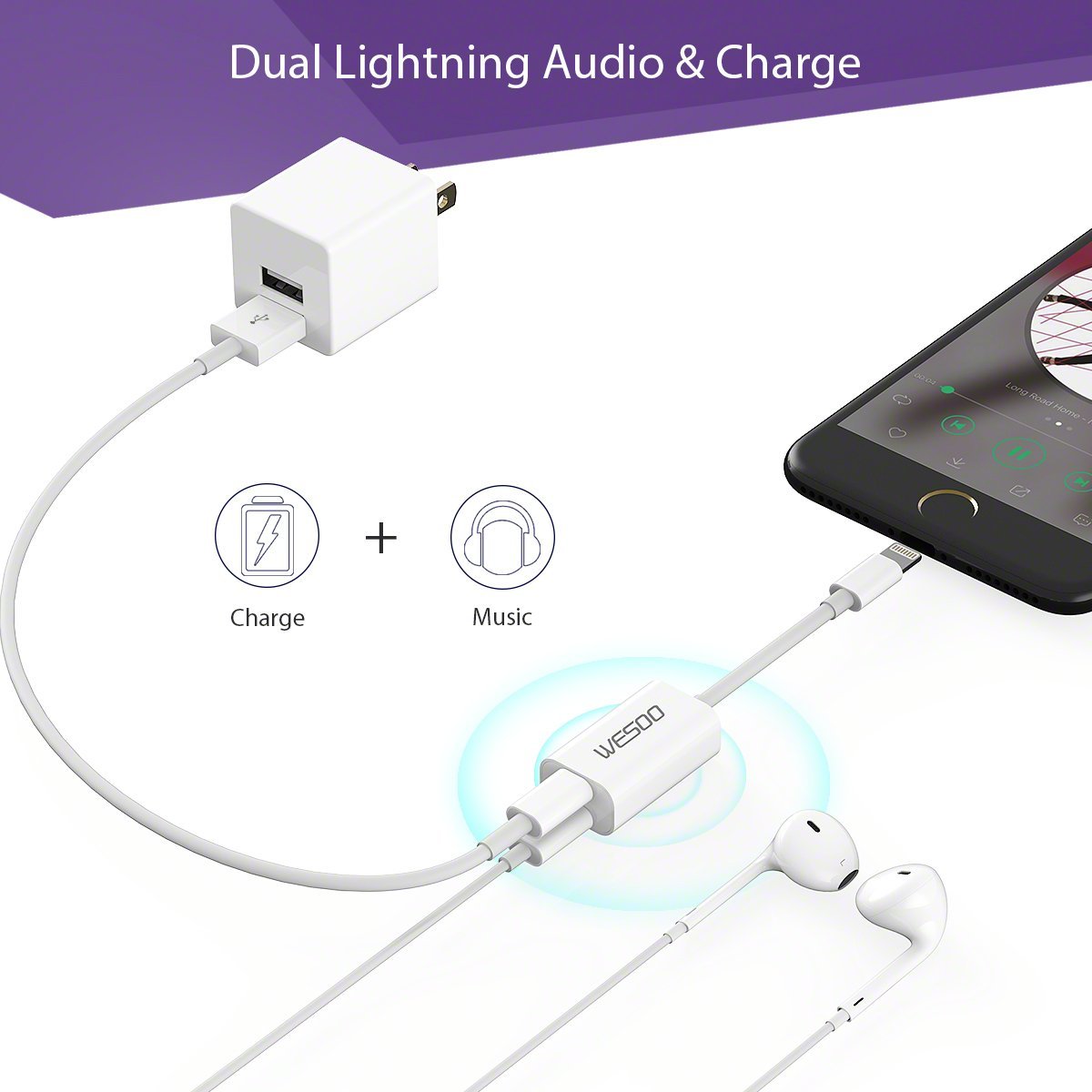 Adattatore e Sdoppiatore per iPhone 7, Wesoo Adattatore Audio Dual Lightning per Auricolari e Ricarica per iPhone 7 / 7 Plus