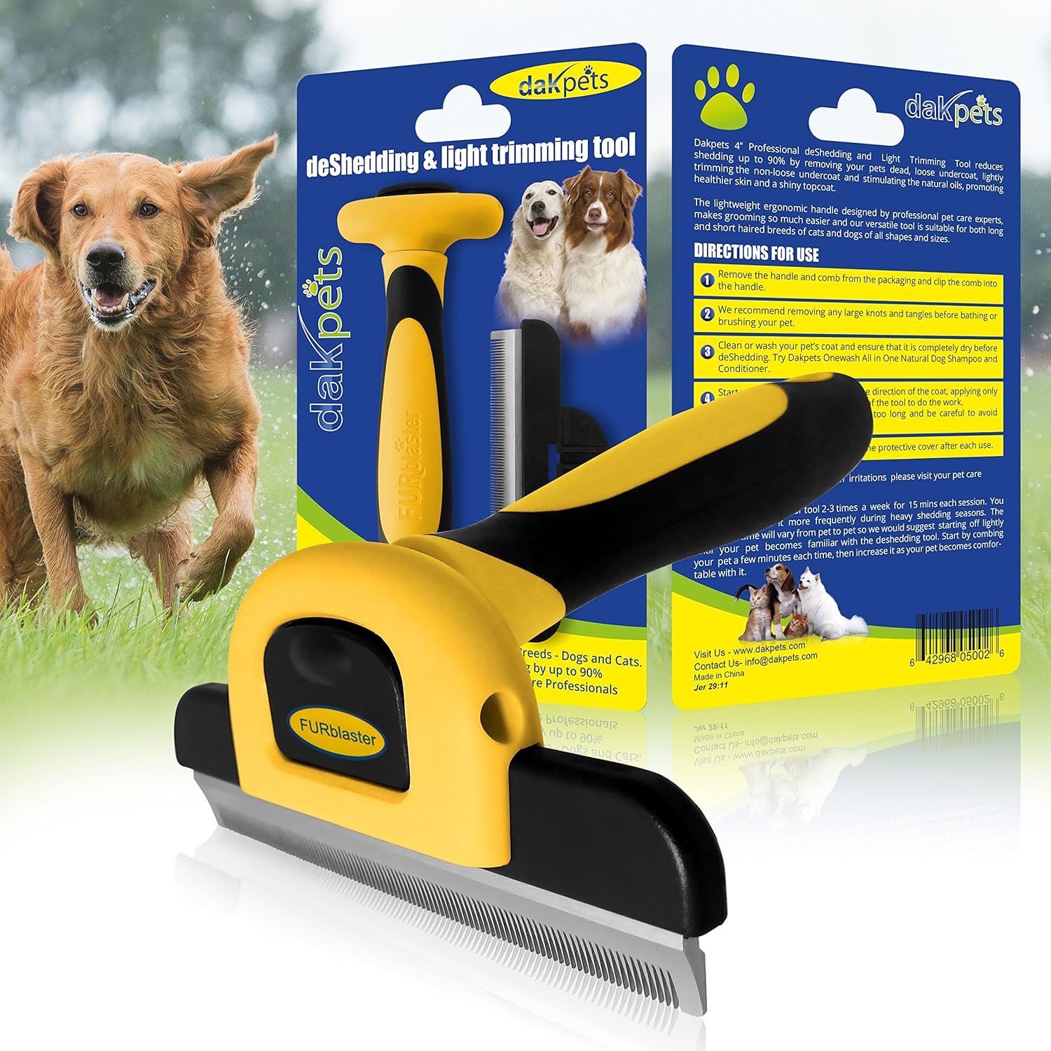Attrezzi per la Toelettatura di animali da compagnia & Spazzola per la Toelettatura di animali da compagnia - per Cani piccoli, medi e grandi + Gatti, con Pelo Corto e Pelo Lungo. Riduce drasticamente la muta in pochi minuti. Oltre 10.000 recensioni positive su Amazon- per DakPets
