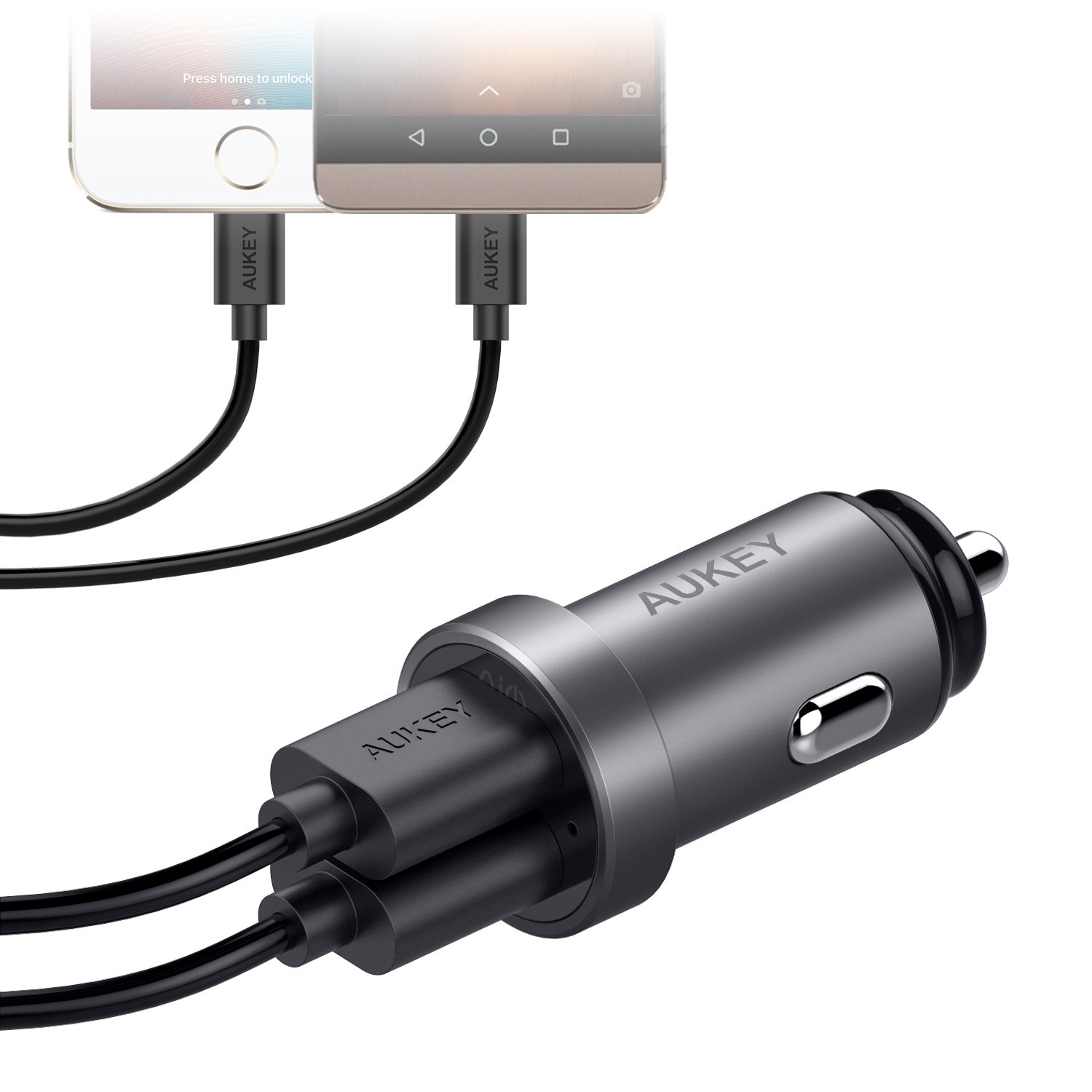 AUKEY Caricabatteria da auto 24W/4.8A Ultra Compatto per iPhone, iPad, Samsung, HTC, Nexus, LG, Tablets ecc. (Grigio)