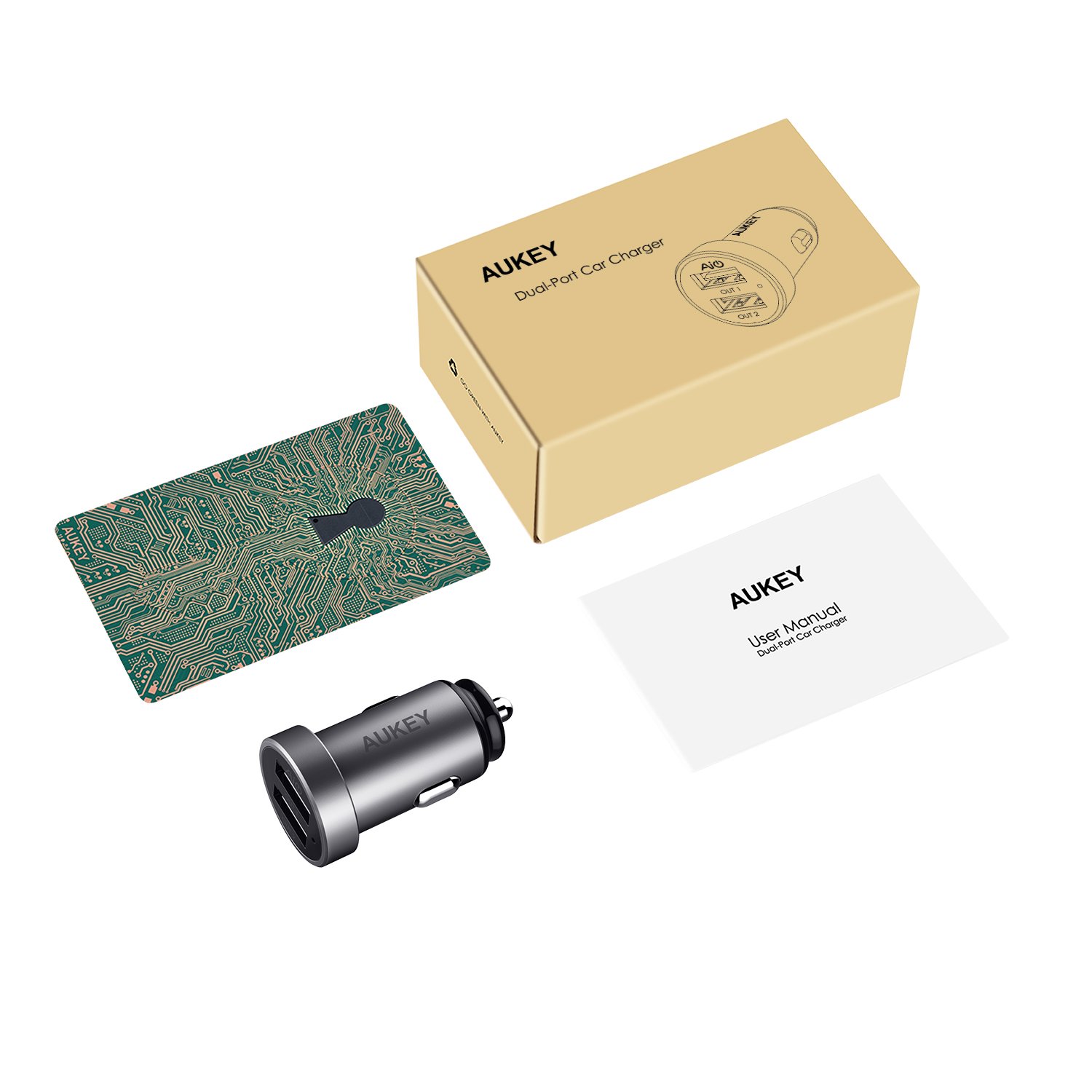 Contenuto del Pacchetto: AUKEY CC-S7 Car Charger con due porte, Manuale cliente, Certificato di Garanzia di 24 Mesi