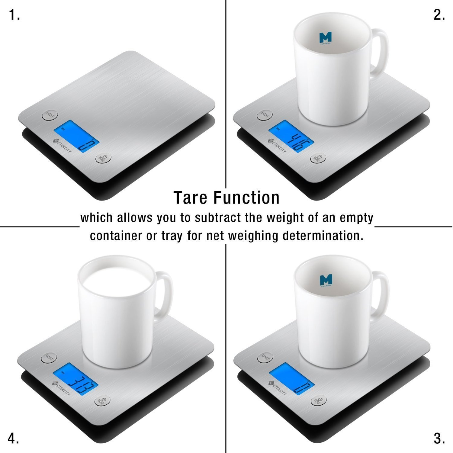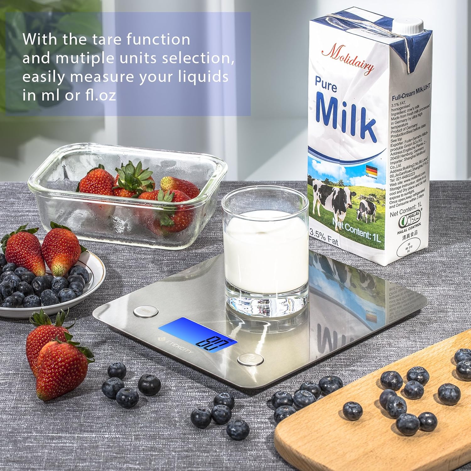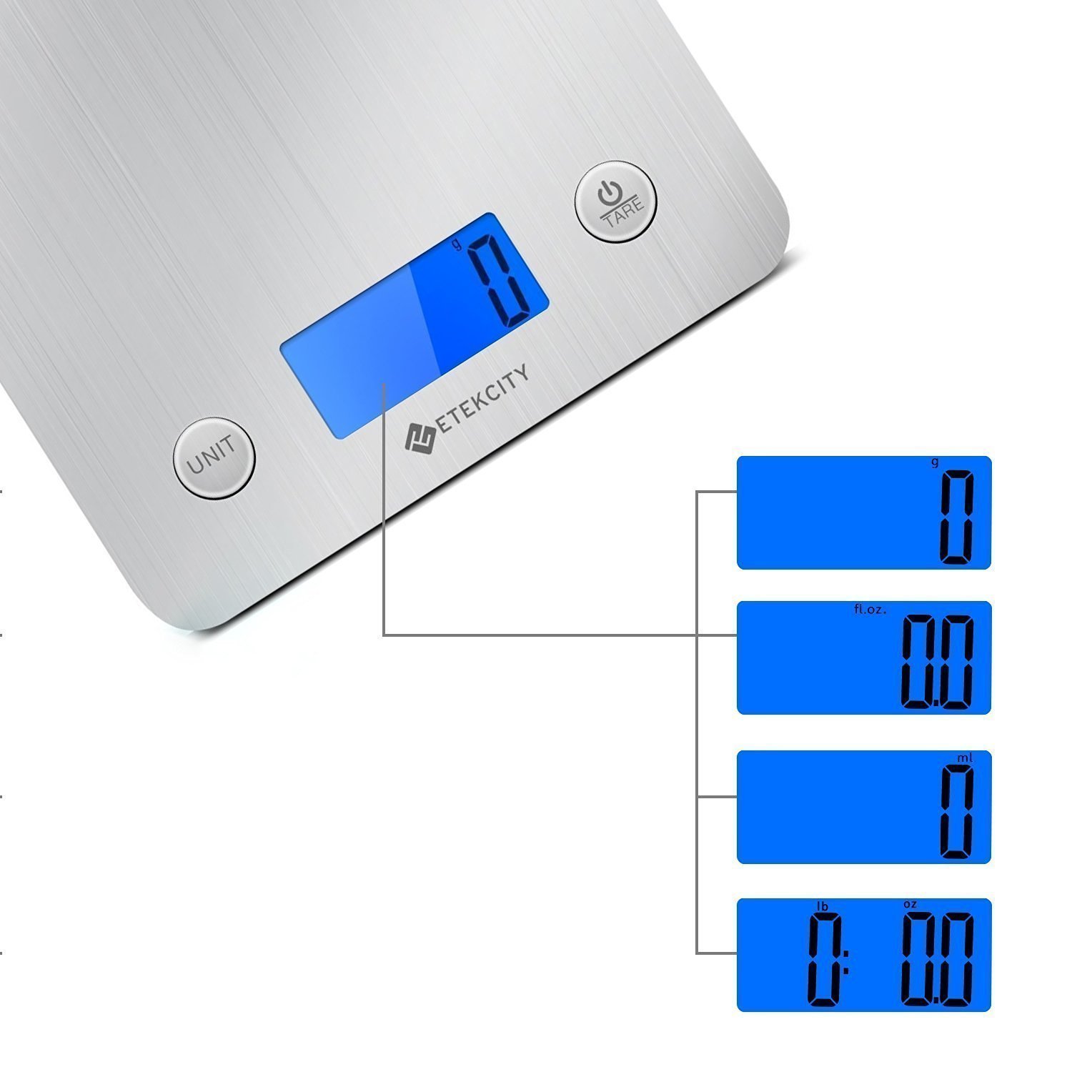 ✍️ La bilancia da cucina d’acciaio inossidabile di Etekcity può misurare precisamente i cibi solidi e liquidi con impareggiabili facilità e convenienza,ti permette di comandare il controllo completo su porzioni pasti,condimenti,nutrizione.È catatterizzata da funzione tara che può permettere agli utenti di determinare facilmente il peso netto di un articolo in contenitore.