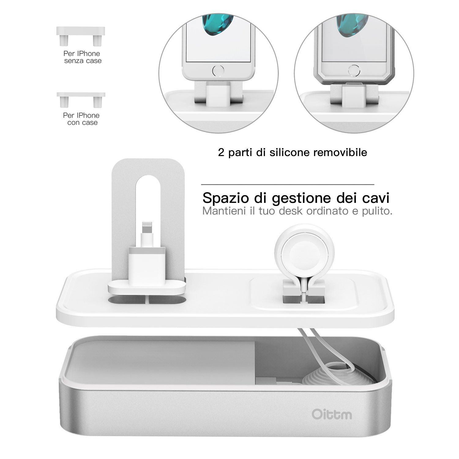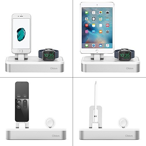 Oittm [5 Porte USB ] Supporto di Ricarica iPhone e Apple Watch Supporti per Apple Watch Series 1 / Apple Watch Series 2 / Apple Watch Nike + e iPhone 7 Plus / iPhone 7 / iPhone 6s Plus / iPhone 6 Plus / iPhone 6s / iPhone 6 / iPhone 5s / iPhone 5/ iPhone SE / iPad Mini /iPod / Apple Pencil / Siri Remote (Argento)