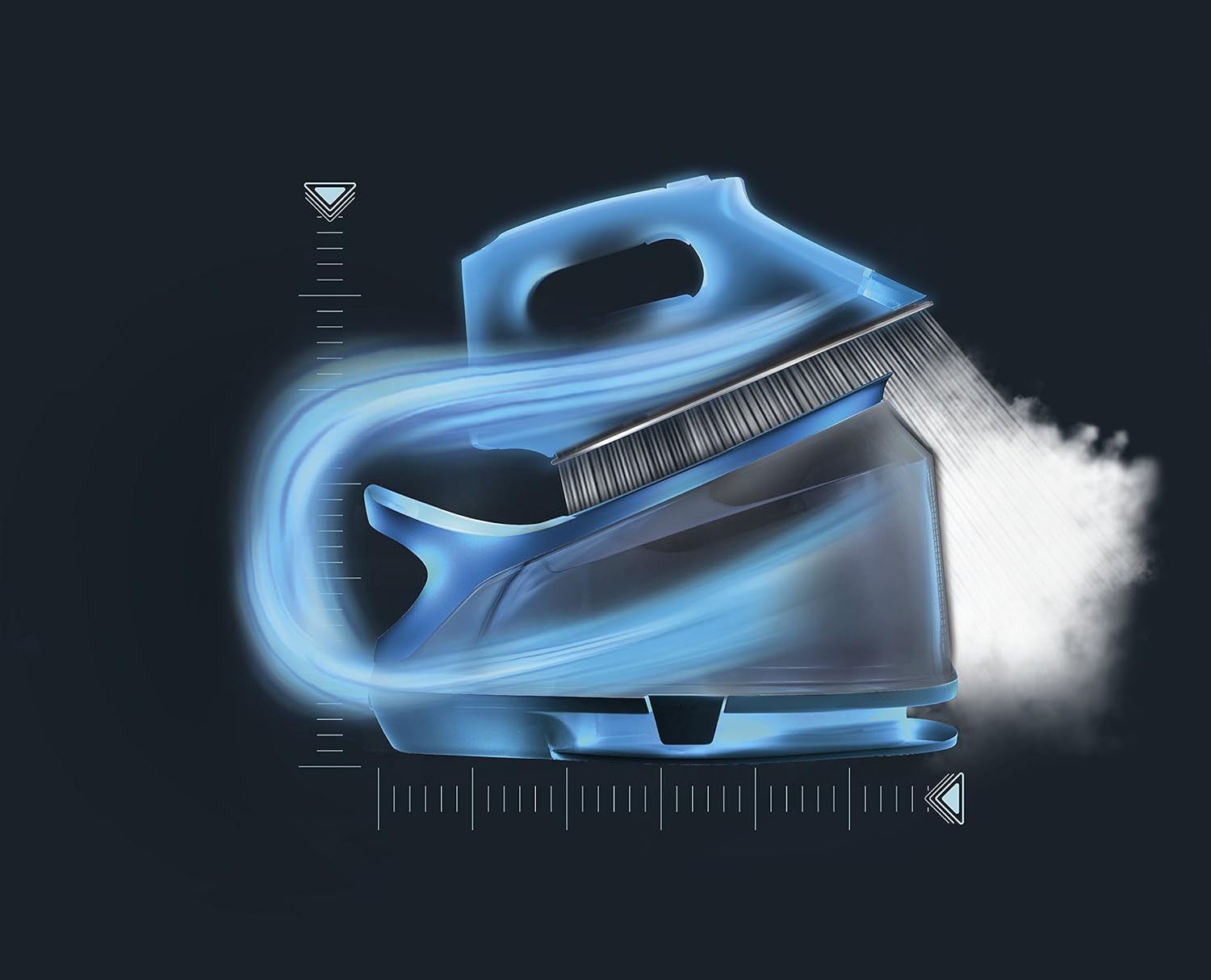 Questa potente caldaia ad alta pressione è dotata della piastra brevettata Microsteam400 in acciaio inossidabile e del controllo elettronico, che assicura un'eliminazione di pieghe e grinze di livello professionale, senza il rischio di bruciare i capi.