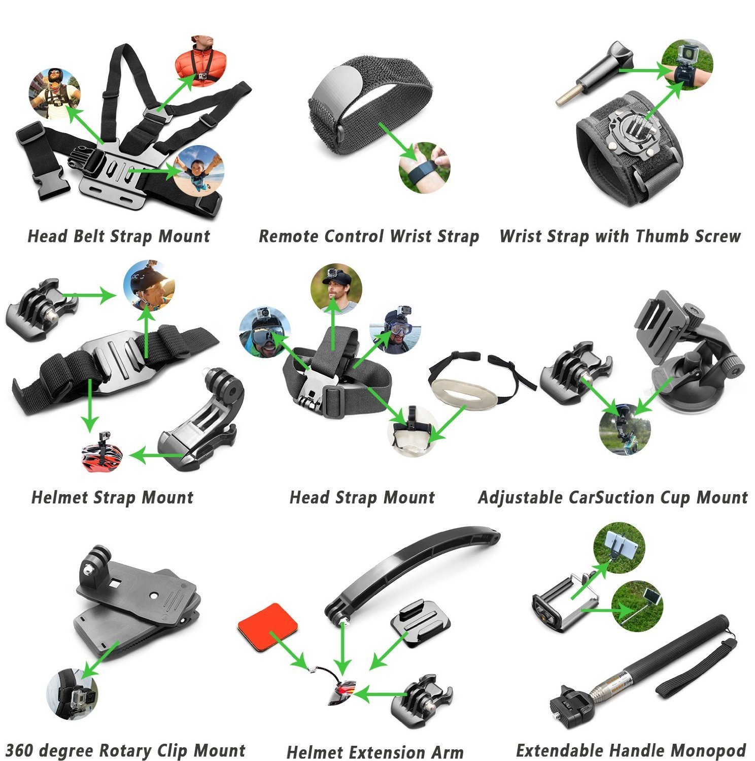 DeKaSi Accessori Kit per Gopro HERO 5/4/3 Black Silver Session (55-IN-1)