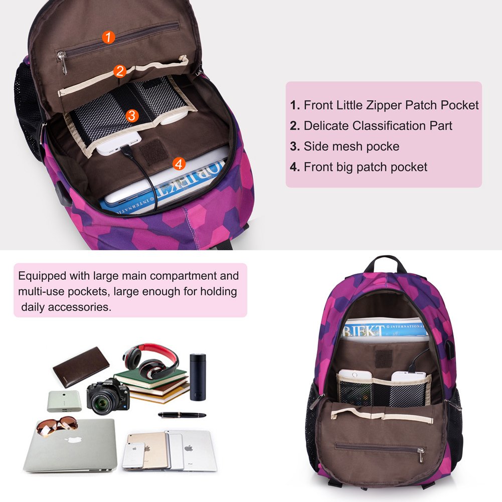 Vbiger Zaino Porta PC Zaino Uomo Zaino Donna Zanino Scuola Zaino PC Con Caricatore USB