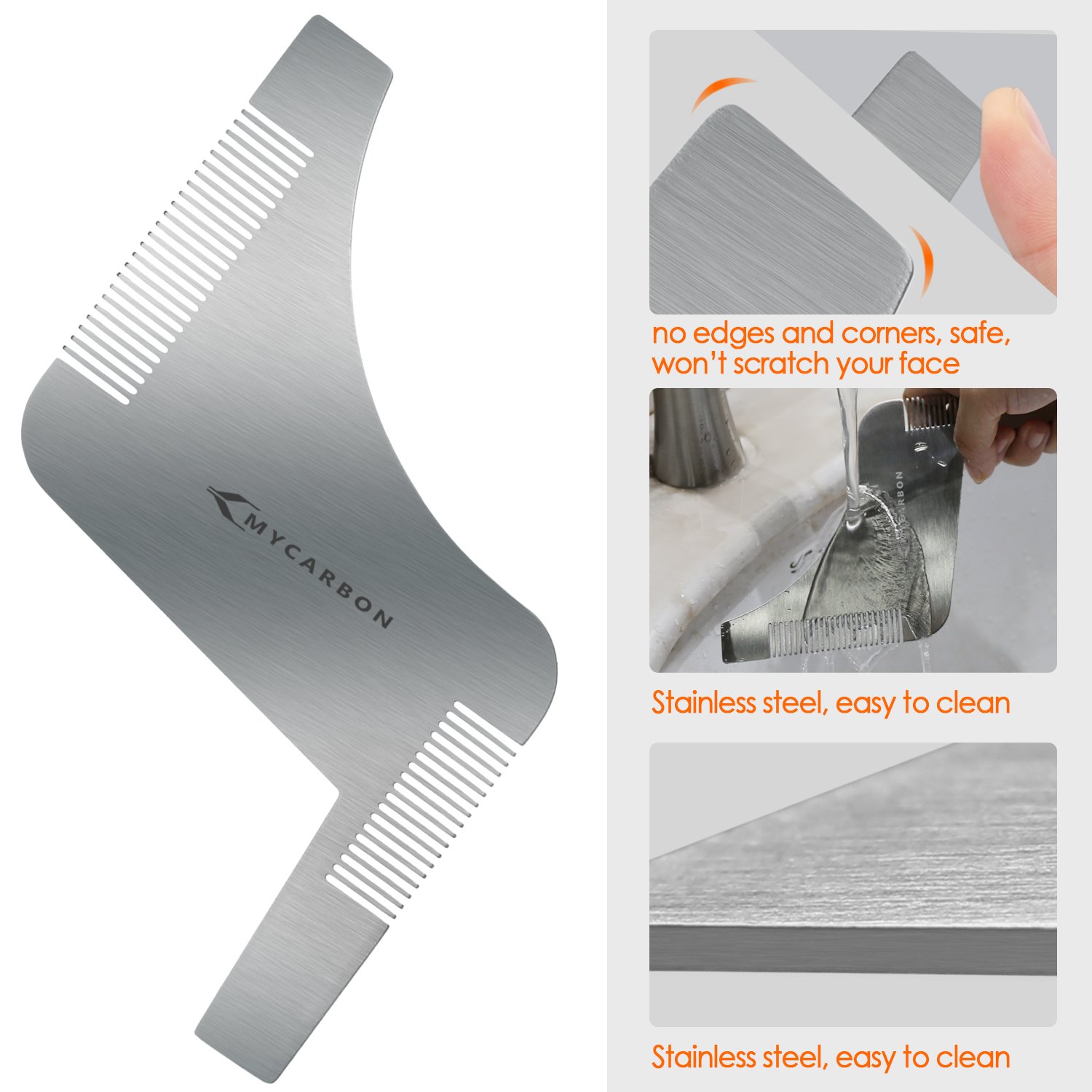 MYCARBON Pettine Barba Forma Uomo in Acciaio Inossidabile Disegno Z per Styling Taglio Barba Pettine da Barba Modellante Portatile